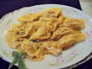 Settembre 8, 2022 RICETTE DI CUCINA articoli 400 admin LE RICETTE DI CASA MIA TRECENTOQUARANTASETTESIMA PARTE 08/09/2022 IN CUCINA CON AMORE E CON FEDERICA Elena Iniziamo questo articolo con una ricetta che faceva mia nonna molto tempo fa: sono i tortelli di rapa bianca e salsiccia, squisitissimi e antichi. TORTELLI DI RAPA BIANCA E SALSICCIA Ingredienti per 4 persone: rape bianche 700 g, 10 amaretti, noce moscata, basilico, burro, 150 g di parmigiano + quello per il condimento, una salsiccia, sale, pepe, origano, peperoncino, erba cipollina, tre uova e duecento g di farina per pasta fresca. Esecuzione: mettiamo subito la salsiccia a grigliare con qualche spicchio di aglio. Poi sbollentiamo le rape e le passiamo al mixer, devono risultare non troppo fini. Mettiamo le rape sminuzzate in una zuppiera, saliamo, pepiamo e aggiungiamo anche un po’ di peperoncino; incorporiamo gli amaretti tritati, la noce moscata, l’uovo, il parmigiano, la salsiccia tritata fine, l’erba cipollina. Mescoliamo bene e formiamo un bell’impasto omogeneo. Lasciamo riposare e nel frattempo impastiamo per fare la pasta, tracciamo dei rettangoli, li riempiamo col ripieno e formiamo i tortelli. Li facciamo cuocere nel brodo vegetale saporito, li condiamo con burro fuso, basilico e origano. Federica Che roba! Sono superbi! Elena Devi ringraziare mia nonna! 11/09/2022 Elena Ed ecco il piatto di oggi: è di pollo arrosto al vin santo, il petto l’ho utilizzato a fare degli involtini dal risultato squisito. INVOLTINI E POLLO ARROSTO AL VIN SANTO Ingredienti: un pollo, aglio, alloro, rosmarino, salvia, origano, sale, pepe, un mestolo di brodo, vin santo, speck, succo di arancia, tabasco. Per il contorno purè di verdure: zucca, patate, cicoria di campo, olio extra vergine d’oliva gentile, parmigiano, sale, aceto di mele. Esecuzione: spelliamo e tagliamo il pollo a pezzetti, salviamo una o due fettine di petto, dopo averlo ben pulito e lavato lo mettiamo a marinare con le erbe sopra elencate, il succo di arancia, sale, tabasco e pepe. Il mattino seguente lo cucineremo facendolo rosolare in casseruola senza alcun grasso, lo sfumiamo col vin santo, incorporiamo ancora tutte le erbe, aggiungiamo un mestolo di brodo e lasciamo cuocere per venti minuti con il coperchio. Intanto in un’altra casseruola facciamo gli involtini con lo speck, l’erba cipollina, poco sale e pepe. Anche in questo caso rosoliamo gli involtini, sfumiamo sempre col vin santo e lasciamo cuocere per 10 minuti circa. Nel frattempo faremo i purè di verdure, lessandole e poi frullandole nel mixer con l’aggiunta di olio, regoliamo di sale e pepe e di consistenza, aggiungeremo poi il parmigiano grattugiato. Impiattiamo il pollo con l’involtino sopra un letto di crema di verdure. Federica Ma che bontà! 13/09/2022 Elena Colazione con mega frittelle alla composta di susine nere; squisitissime! Ricordate le frittelle al velo di casa mia? Leggere impalpabili e soffici come una piuma; la ricetta è la stessa con qualche variante. COLAZIONE CON MEGA FRITTELLE Ingredienti: 700 g di susine Stanley, un cucchiaio di zucchero, due stecche di cannella, mezzo bicchiere di grappa alla prugna, un cucchiaino di estratto di vaniglia. Per le frittelle: un uovo e un tuorlo, un cucchiaio raso di zucchero a velo, buccia di un limone grattugiata, succo di mezzo limone, un bicchiere di latte, mezzo bicchierino di rum per dolci, un cucchiaio di olio di mais, farina lievitata per dolci q.b. per formare un impasto omogeneo né troppo liquido né troppo solido; olio per friggere. Due palline di gelato a piacimento. Esecuzione: per prima cosa mettiamo le susine nel lavabo del lavandino e le spazzoliamo una ad una per togliere le impurità, poi le passeremo sotto l’acqua e le snoccioleremo tagliandole in quattro pezzi. Le mettiamo nella casseruola insieme allo zucchero, la vaniglia, la grappa, la cannella; mettiamo il coperchio e portiamo a bollore, poi le lasceremo sobbollire a calore moderato per 15 minuti, le trasportiamo in una zuppiera per farle raffreddare più in fretta. Adesso ci dedichiamo alle frittelle: incominciamo con le uova e lo zucchero, la scorza di limone e mescoliamo energicamente, aggiungiamo l’olio, un pizzico di sale, il succo di limone alternato al latte e alla farina, infine il liquore. Prendiamo una padella capiente quanto si desidera la grandezza della frittella, versiamo 4, 5 cucchiai di olio, portiamo a temperatura e immergiamo due mestoli di impasto, si allargherà da solo per formare una frittella gigante, la giriamo sull’altro lato e la mettiamo sulla carta assorbente, poi verranno trasportate nei piatti da portata e si metterà sopra la composta di susine (un po’ dolci e un po’aspre) e se è necessario anche qualche pallina di gelato e menta piperita. Federica Io ti giuro che non diventerò mai anoressica! Che goduria! Elena Sì, però sono da fare quando a mezzogiorno decidiamo di stare un po’ leggeri. 14/09/2022 Elena Una bella pasta asciutta a volte ci tira su. Questi sono i tortiglioni con ragù di carne brasata al vino e alle verdure, un profumo e una squisitezza davvero. TORTIGLIONI ALLA CARNE BRASATA Ingredienti: tortiglioni, e sugo alla carne brasata fatto con: cappello del prete o muscolo, oppure paletta, o polpa di coscia di manzo, pomodori freschi 700 g, sale, pepe, peperoncino, vino bianco secco, alloro, ginepro, spezie miste, brodo vegetale, olio extra v. d’oliva, uno spicchio di aglio, una cipolla rosata, cumino, un porro. Parmigiano e pecorino grattugiati, una bella manciata di origano. Esecuzione: facciamo rosolare la carne senza alcun grasso, sfumiamo col vino, in un’altra casseruola facciamo rosolare aglio, cipolla, porro in poco olio, sfumiamo col vino e aggiungiamo i pomodori tritati, sale pepe, peperoncino, alloro, cumino, ginepro, trasportiamo la carne già rosolata poi aggiungeremo il brodo; portiamo ad ebollizione, abbassiamo il calore e con il coperchio facciamo cuocere per un’ora e trenta minuti. La