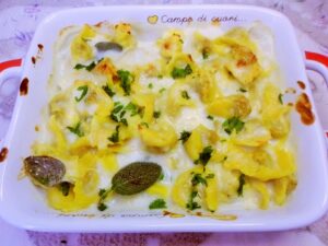 Elena   La ricetta di oggi l’ho dedicata al dott. Robert e Linda, sono i cappelletti asciutti conditi con funghi porcini, burro e salvia e carciofini,  fanno da primo piatto e da secondo piatto,  insomma un piatto unico.