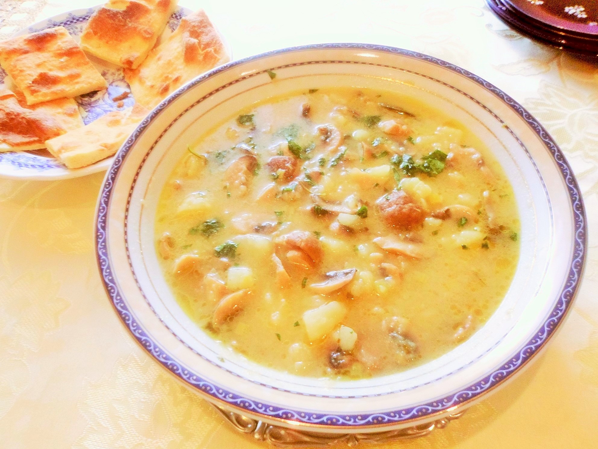 Ingredienti:  funghi  champignons,  pioppini e porcini,  sale,  pepe,  tabasco,  uno scalogno,   uno spicchio di aglio,  prezzemolo,  origano,  alloro,  patate, topinambur, olio extra vergine d’oliva,  brodo,  brandy;  parmigiano o pecorino grattugiati a piacere.