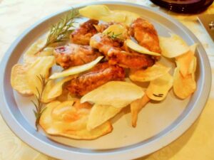 Elena  Un bel galletto allo spiedo può tirare sú il morale,  specialmente se contornato di patatine fresche.   Eccolo nella foto sotto.
