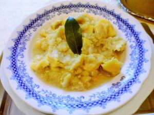 Elena  Siamo già arrivati  all’ultima ricetta di questo articolo.  Una ricetta antica che facevano le nostre nonne specialmente nelle famiglie numerose.  Si chiamava la “brisa” con i fagioli.  Un piatto nutriente e gustoso,  piaceva ai grandi e ai piccoli,  lo gustavano tutti con la polenta di mais.