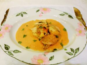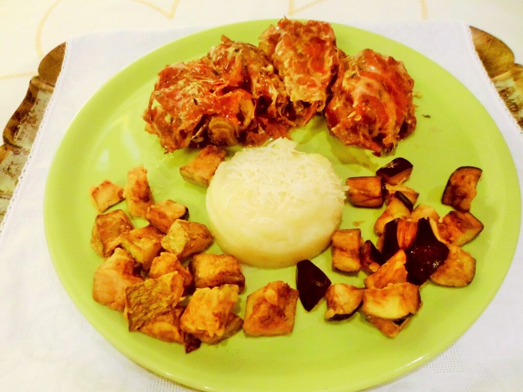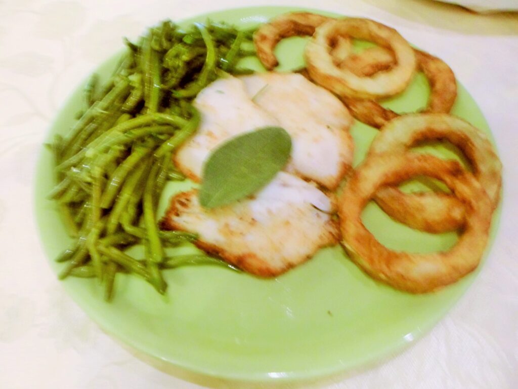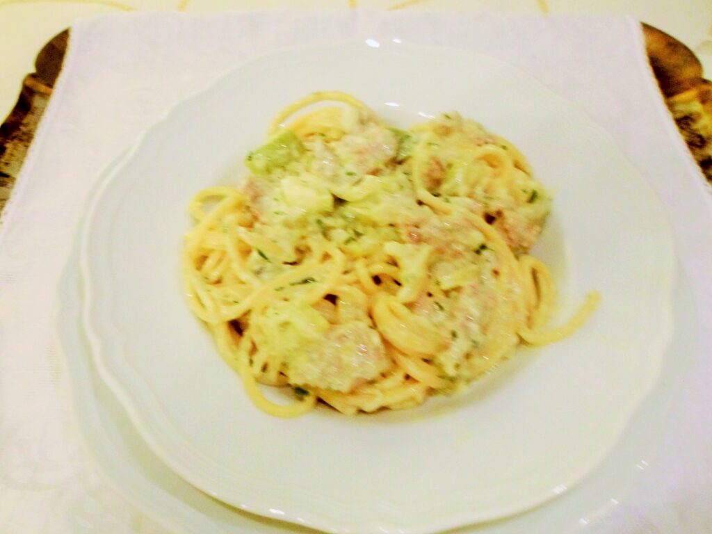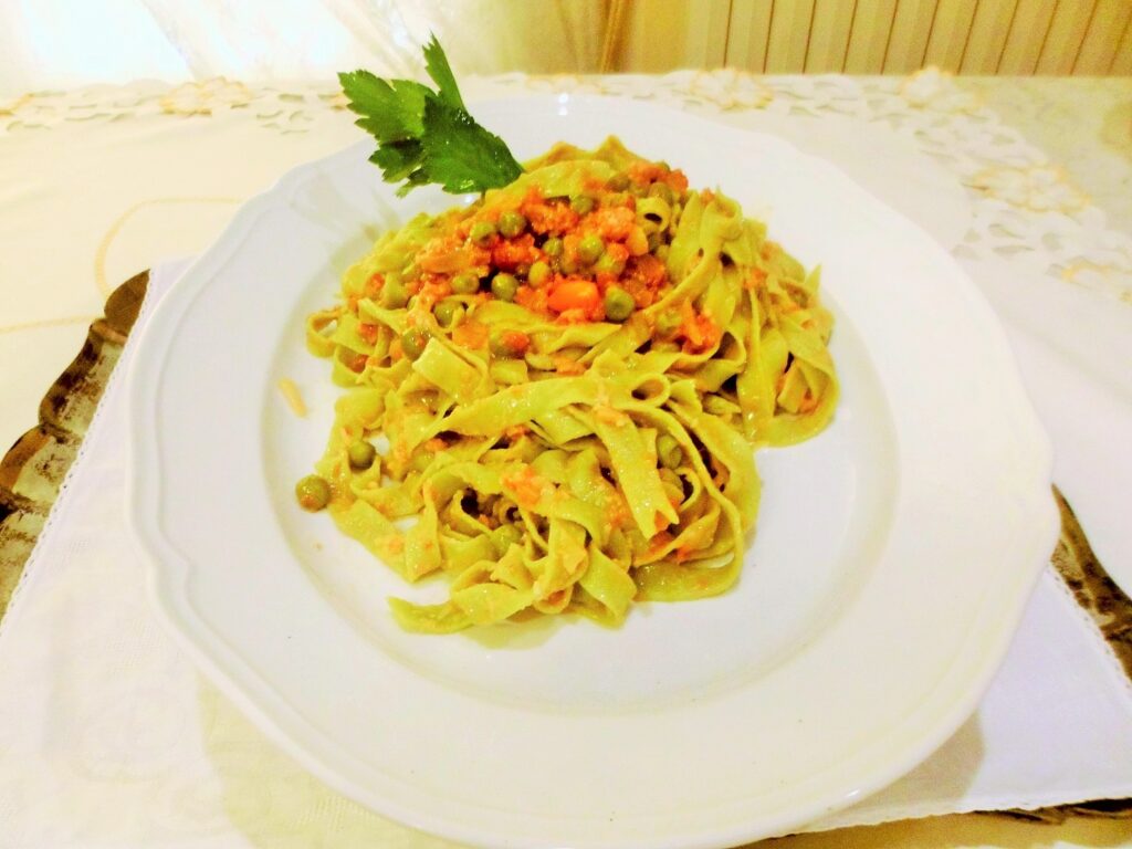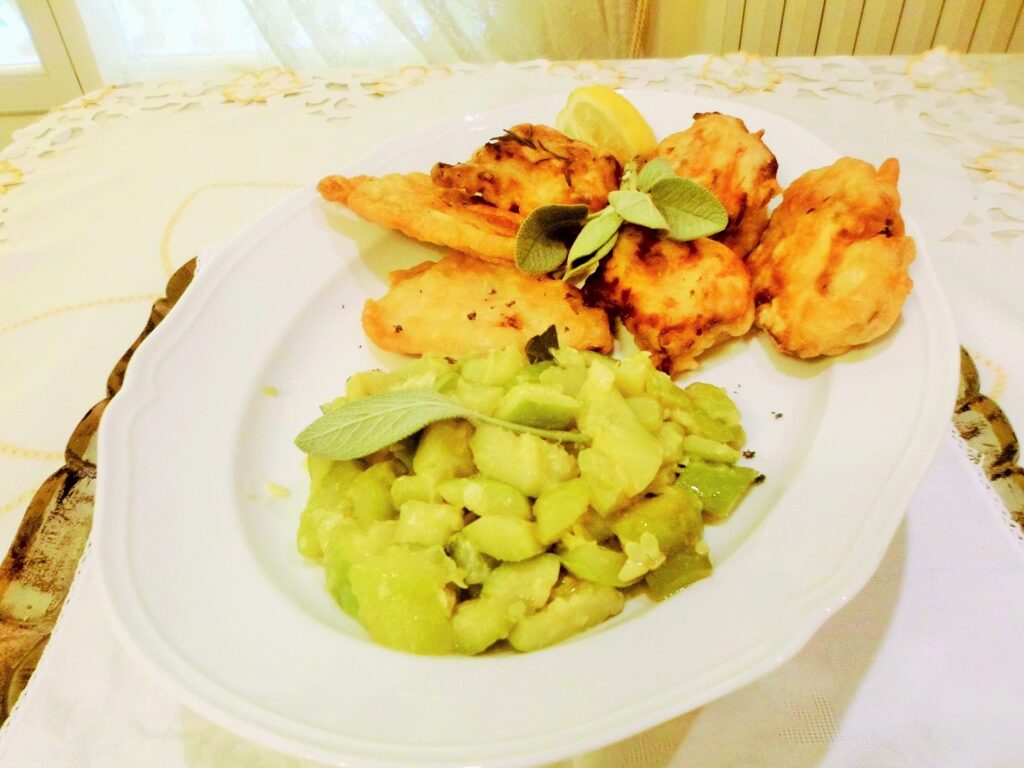 Luglio 19, 2021 RICETTE DI CUCINA articoli 400 admin LE RICETTE DI CASA MIA TRECENTODODICESIMA PARTE 19/07/2021 IN CUCINA CON AMORE E CON FEDERICA Elena Come ho già espresso in un altro articolo a me piace fare la pasta in casa; oggi presento delle tagliatelle molto particolari perché profumano di cose buone e salutari. TAGLIATELLE AL SUCCO DI SEDANO E LIME Ingredienti per la sfoglia: 2 uova intere, mezzo bicchiere di succo di sedano 70% e lime, 30%, 350 g di farina per pasta fresca o semola di grano duro, un pizzico di sale. Per il condimento: serve una bella passata di pomodori freschi, erbe a piacimento, due cipollotti, uno spicchio d’aglio, peperoncino, parmigiano, olio extra v. d’oliva, pisellini freschi, stracotto di spalla bovina e poi macinato, un cucchiaio di burro chiarificato. Esecuzione: Mettiamo subito in pentola per fare il ragù, così mentre si cuoce noi facciamo le tagliatelle. Una volta fatte le caliamo nell’acqua che bolle con un po’ di sale e le mantechiamo nella casseruola del ragù. Dopo avere mantecato la nostra pasta metteremo un po’ di olio e il burro chiarificato sciolto a bagnomaria e anche una bella manciata di parmigiano in ogni piatto. Buon Pranzo o buona cena! Federica Diciamo che anche queste fatte col succo di verdure a mia madre non scappano proprio! Te l’ho detto che lei le tue ricette le ha fatte tutte? Elena Grazie! Cara Fede. 20/07/2021 Elena Oggi non potevamo fare che una ricetta di un secondo: il pollo ruspante. Questa ricetta è laboriosa, perché ha diversi passaggi, ma niente paura, tra un passaggio e l’altro possiamo fare altre cose. POLLO CROCCANTE E SAPORITO Ingredienti: pollo, cosce, petto e sovra coscia, succo di agrumi, erbe aromatiche, spezie, vino, olio di arachidi, sale, pastella. Per il contorno: zucchine, salvia, basilico, aglio, erba cipollina, olio extra vergine d’oliva, parmigiano, un pizzico di mentuccia. Esecuzione: prendiamo le cosce di pollo , le tagliamo a metà osso, le apriamo, togliamo la pelle e l’eventuale grasso, le battiamo con il batticarne; lo stesso faremo con il petto e le altre parti, faremo anche delle fettine piccole e sottili. Mettiamo a marinare la carne nel succo di agrumi, spezie, erbe aromatiche e ovviamente sale e pepe. Poi lo faremo rosolare senza alcun grasso, lo bagneremo col vino e lasciamo evaporare, mettiamo subito il coperchio e lo portiamo a cottura al dente. Dopo questo passaggio faremo la pastella che desideriamo e lo friggeremo in olio bollente; questo piatto va servito con le zucchine trifolate e irrorate di parmigiano e olio. Federica Io una volta l’ho fatto così, al naturale: l’ho messo in pastella e l’ho fritto, non riuscivo a mangiarlo, usciva il siero colore del sangue che sapeva di pollo! Il tuo, lasciatelo dire è indimenticabile! Elena Addirittura! Però, sei una buongustaia! 21/07/2021 Elena Ed ecco un altro primo nuovo, si tratta di un risotto in salsa nuova; bello cremoso e squisito! RISOTTO IN SALSA NUOVA Ingredienti: riso q.b. salvia, susine (regina Claudia) verdi, un pomodoro cuore di bue maturo, basilico, cannella, olio extra vergine d’oliva, parmigiano, stracchino, brodo vegetale, essenza di pino mugo pochissima, pinoli. Esecuzione: tostiamo il riso senza alcun grasso, poi lo sfumiamo con mezzo bicchiere di prosecco, lo saliamo, e aggiungiamo il brodo per la cottura. A metà cottura incorporiamo il pesto, lo lasciamo cuocere al dente, poi aggiustiamo di sale e pepe, mantechiamo il risotto con lo stracchino, lo togliamo dal fuoco e aggiungiamo anche una manciata di parmigiano. Federica Che bontà! 22/07/2021 Elena Il piatto che presento oggi è ancora il baccalà, ma in maniera diversa. Il risultato è stato eccellente perché è piaciuto molto. BACCALÁ RIVESTITO A FESTA Ingredienti: baccalà che serve, pangrattato integrale, uova, farina 00, sale, pepe, un cipollotto tropea, un trito di erbe miste: origano, cerfoglio, tanaceto, mentuccia, salvia, rosmarino, alloro, e aceto. Per il contorno: pomodorini, olive verdi, capperi, acciughe sott’olio, panco e parmigiano grattugiato, sale peperoncino; patate e olio per friggere. Esecuzione: Lasciamo a bagno in acqua il baccalà per due o tre giorni avendo cura di sostituire l’acqua spesso. Poi lo mettiamo a marinare con il cipollotto e un insieme di erbe tritate, sale, pepe, olio e aceto. Dopo questa operazione lo facciamo in cotoletta, e lo serviamo con dei pomodorini farciti fatti al forno e patatine fritte sottili e croccanti. Federica Diciamo che anche questo piatto si fa mangiare con gusto. Come fai a fare le patatine così croccanti? Grazie! Elena Prima di tutto occorre la patata adatta per la frittura, poi bisogna togliere l’amido, il segreto sta nell’amido.