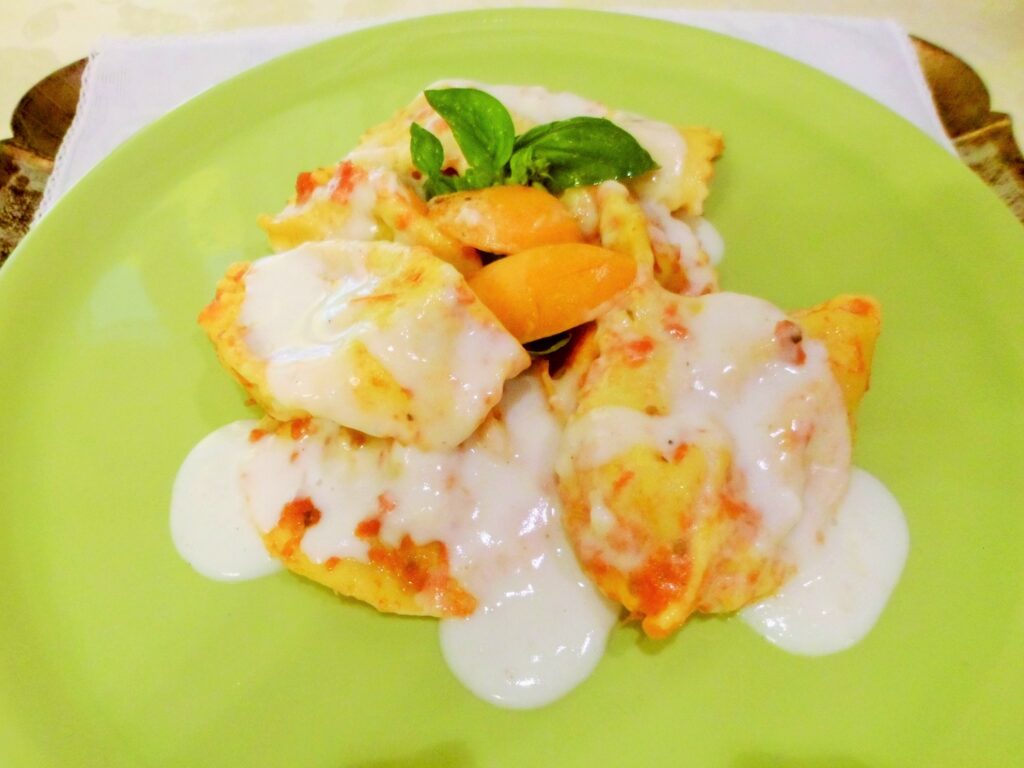 Giugno 22, 2021 RICETTE DI CUCINA articoli 400 admin LE RICETTE DI CASA MIA TRECENTONOVESIMA PARTE 22/06/2021 IN CUCINA CON AMORE E CON FEDERICA Elena Adesso passiamo ai gusti estivi con salse di frutta compatibili con le carni, come ad esempio la faraona in salsa di albicocche ed erbe una combinazione fresca e saporita con il giusto punto di acidità e morbidezza. FARAONA IN SALSA DI ALBICOCCHE ED ERBE Ingredienti: faraona, ingredienti per la marinatura: (salvia rosmarino, aglio fresco, origano, alloro, sale, spezie, limone, olio extra vergine d’oliva gentile) brandy, brodo vegetale. Per la salsa: sale, pepe, timo, basilico, una foglia di menta, 5 albicocche mature con la buccia, olio, limone grattugiato, pepe nero. Esecuzione: Si toglie quasi tutta la pelle della faraona, poi si taglia a pezzi , e si mette in marinatura per alcune ore o per tutta una notte; si toglie dalla marinatura, si fa rosolare in una casseruola senza alcun grasso, si gira e rigira, poi va sfumata col brandy, si aggiunge un mestolo di brodo vegetale, si aggiusta di sale e pepe, anche qualche foglia di timo, basilico, la copriamo col coperchio e si porta a cottura a calore moderato. Nel frattempo facciamo la salsa con le albicocche mature, (ben lavate e private del nocciolo) aggiungiamo un po’ di latte, la scorza del limone grattugiata e un po’ di olio, sale e pepe, poi frulliamo a crema il tutto e lo versiamo sulla faraona aggiungendo anche una foglia di menta spezzettata. Un sapore estivo e leggermente acidulo che fa della carne una delizia! Federica Che ricetta incredibile e meravigliosa! 23/06/2021 Elena Voglio stupirti con questa ricetta: gli gnocchi alle mele disidratate, con farina di farro, sono buonissimi e leggeri. GNOCCHI DI MELE IMPERATORE DISIDRATATE Ingredienti: quattro mele imperatore, cannella, noce moscata, sale, farina di farro, un uovo, due amaretti. Per il condimento: salsa fresca di pomodoro fatta in casa, sale, peperoncino, latte, origano fresco, basilico, due scalogni, abbondante parmigiano, olio extra v. d’oliva. Esecuzione: per prima cosa ho messo le mele in forno a temperatura bassa, si sono cotte e asciugate dall’acqua, poi le ho schiacciate con la forchetta, ho aggiunto l’uovo, la cannella, e due amaretti, e la farina di farro. Ho fatto un impasto omogeneo ma sodo e poi ho ricavato gli gnocchi e passati uno ad uno sulla forchetta. Dopo 10 minuti li ho calati nell’acqua bollente con un po’ di sale, li ho scolati e messi nella casseruola del sugo, poi li ho mantecati e aggiunto parmigiano e olio a crudo. Federica A me piacciono i sapori che hai usato per questo piatto, sono combinati bene, quindi so per certo che saranno squisiti! 24/06/2021 Elena Cara Fede eccoti gli ossobuchi in un’altra ricetta: sono gli ossobuchi ai porri: buonissimi! OSSOBUCHI AI PORRI Ingredienti per 4 persone: 4 ossobuchi, tre porri, quattro cucchiai di salsa di pomodoro fatta in casa, sale, peperoncino, pepe, un bicchierino di aceto di mele, farina doppio zero, olio extra vergine d’oliva, cumino, prezzemolo, basilico, origano, due foglie di alloro, spezie. Esecuzione: tagliamo il contorno degli ossobuchi perché non si arriccino, poi li passiamo nella farina, li mettiamo in una casseruola larga con qualche cucchiaio di olio e li facciamo dorare. Sfumiamo con l’aceto di mele, aggiungiamo il porro tritato , il peperoncino, il sale, gli aromi e le spezie, aggiungiamo anche il pomodoro e il brodo, copriamo la casseruola e facciamo cuocere lentamente a calore basso fino a quando la carne non sarà cotta alla perfezione. Serviamo gli ossobuchi con polente e il contorno preferito. Federica Sento che arriva il profumo fino a me! 25/06/2021 Elena Oggi invece presento un primo piatto: i fusilli a modo mio; anche questi buonissimi! FUSILLI A MODO MIO Ingredienti: fusilli, parmigiano, pecorino, salsa di pomodoro, melanzane, peperoni, zucchine, erbe aromatiche, olio extra vergine d’oliva, farina tipo “0”, olio per friggere, sale, tabasco, due scalogni. Esecuzione: puliamo le erbe, le tritiamo con le mani per non contrastare le molecole, poi puliamo e tagliamo le verdure a cubetti, le mettiamo sotto sale per mezz’ora poi le passiamo nella farina, nell’olio bollente e sulla carta paglia. Adesso facciamo un soffritto con poco olio e gli scalogni tritati, mettiamo la salsa di pomodoro, portiamo a bollore, e aggiungiamo il tabasco, aggiustiamo di sale, infine caliamo la pasta; a cottura al dente li scoliamo nella casseruola del sugo, poi li mantechiamo e a fuoco spento aggiungiamo l’olio a crudo, i due formaggi grattugiati, le verdure fritte infine le erbe spezzettate. Il risultato è assicurato! Federica Buoni, buoni, buoni! 26/06/2021 Elena È la stagione delle albicocche, questo frutto meraviglioso mi ha ispirando molte ricette: quella che presento oggi sono i ravioli con ricotta e albicocche, sono squisiti! RAVIOLI DI ALBICOCCHE Ingredienti per 4 persone: Per la sfoglia usiamo 3 etti di semola di grano duro oppure la farina per pasta fresca, 3 uova+ qualche cucchiaiata per il piano di lavoro. Per il ripieno: quattro etti di ricotta, 3 etti di albicocche private dei noccioli, sale, noce moscata, 4 amaretti, scorza grattugiata di mezzo, limone 4 cucchiai di pecorino romano, 100 g di mortadella tagliata a piccoli pezzi. Ingredienti per il condimento: olio extra vergine d’oliva gentile, parmigiano, salvia, e un cipollotto. Esecuzione: facciamo il ripieno setacciando la ricotta, aggiungendo le albicocche mature con la buccia, ben lavate e tagliate a piccoli pezzetti, mettiamo il sale, la mortadella tagliata a listarelle sottili, il pecorino, la noce moscata, gli amaretti sbriciolati e la scorza del limone. Facciamo un bell’impasto omogeneo e lasciamolo riposare per un po’, il tempo di impastare e tirare a sfoglia. Una volta fatta una bella sfoglia mettiamo il ripieno e diamo ai ravioli la forma desiderata. Eccoli nella foto sopra; io ne ho fatte tre forme. Per il condimento, una volta scolati i