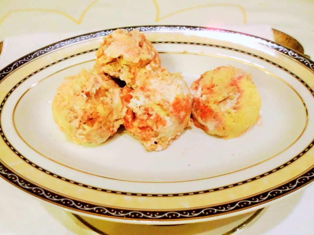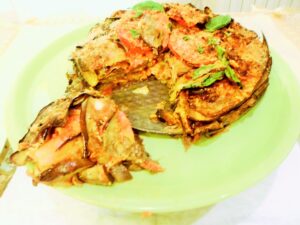 Luglio 10, 2021 RICETTE DI CUCINA articoli 400 admin LE RICETTE DI CASA MIA TRECENTOUNDICESIMA PARTE 10/07/2021 IN CUCINA CON AMORE E CON FEDERICA Elena Oggi iniziamo con il dolce della domenica: ancora il gelato fatto in casa. Ho messo insieme questi due gusti meravigliosi ispirandomi al nord e al sud: il gelato alle noci e il gelato alla cassata siciliana. GELATO ALLE NOCI E ALLA CASSATA SICILIANA Ingredienti per il gelato alle noci: 150 g di noci sgusciate, 150 g di zucchero, 300 ml di panna, 100 ml di nocino invecchiato fatto in casa, mezzo cucchiaino di estratto di vaniglia. Ingredienti per il gelato alla cassata siciliana: 150 g di canditi misti, 200 g di panna, 200 g di ricotta dolce, 130 g di zucchero a velo con vaniglia, mezzo limone. Prima esecuzione: tritiamo le noci non troppo fini, mescoliamo insieme panna e zucchero, uniamo il trito di noci e il nocino, poi versiamo il tutto nel cestello del gelato già in pressione e dopo 25 minuti il gelato sarà pronto. Adesso facciamo quello alla cassata siciliana: Sbattiamo la ricotta con lo zucchero alla vaniglia, uniamo la panna e la scorza grattugiata di mezzo limone. Versiamo il tutto nel cestello e dopo 15 minuti aggiungiamo i canditi misti. Dopo altri 10 minuti il gelato sarà pronto. Eccoli nella foto sopra. Federica Mamma mia! Il nocino, le noci i canditi, che gusti strepitosi! Elena Grazie! Il nocino l’ ho fatto alla vecchia maniera, senza lo sciroppo di glucosio ma solo con alcool zucchero e ovviamente le noci : si conserva per anni e più invecchia più diventa gustoso per fare i dolci. 12/07/2021 Elena Anche la ricetta del piatto di oggi è nuova: sono spaghetti dal gusto strepitoso, da provare. SPAGHETTI NUOVI Ingredienti per due persone: 160 g di spaghetti, una zucchina, sale, pepe, salvia, aglio , scalogno, salamino piccante, prezzemolo, origano fresco, olio extra vergine d’oliva, due etti di ricotta vaccina, latte q.b., cerfoglio, piselli, parmigiano, qualche gheriglio di noci. Esecuzione: mettiamo le erbe sopra elencate nel mixer insieme all’aglio, allo scalogno, alla ricotta, le noci, mezzo bicchiere di latte, sale, pepe, la zucchina tagliata a piccoli pezzi e 100 g di parmigiano. Dopo aver ricavato il pesto caliamo gli spaghetti, e nel frattempo grigliamo il salamino piccante e lo tagliamo a piccoli pezzi; abbiamo lessato a vapore i piselli e li uniremo al pesto. Scoliamo gli spaghetti e li adagiamo nella casseruola del pesto, aggiungiamo mezzo mestolo di brodo, il salamino, e mantechiamo la pasta, per ultimo mettiamo un giro di olio e ancora un po’ di parmigiano grattugiato. Sono buonissimi! Federica Da dove le sforni tutte queste ricette; sono meravigliose! Elena Grazie! Oramai è una vita che cucino, la passione è aumentata col tempo, quindi mi escono dalla testa. 13/07/2021 Elena Un’altra ricetta squisita è quella che presento oggi: la torta di melanzane, può essere un primo, un secondo o anche un antipasto. Eccola nella foto sotto TORTA SALATA DI MELANZANE Ingredienti per 5-6 persone: 10 melanzane lunghe, sugo di pomodoro, basilico, origano, stracchino q.b. 200 g di prosciutto cotto a fette, un pomodoro grande d’insalata, sale, pepe, parmigiano, pecorino, olio extra vergine d’oliva, mezzo bicchiere di latte, due scalogni, mezzo porro e pangrattato. Esecuzione: incominciamo col tagliare le melanzane a fettine sottili, le mettiamo in fila sopra il piano di lavoro e le saliamo; le lasciamo riposare per 40 minuti circa. Poi facciamo un buon sugo al pomodoro fresco con il solito soffritto e erbe aromatiche; adesso prepariamo tutti gli ingredienti sul piano di lavoro e procediamo col grigliare le melanzane spennellate con l’olio, una volta terminata questa operazione incominciamo a comporre la torta. Prendiamo la teglia dal diametro di circa 22 cm, la ungiamo completamente, incominciamo a spargere un po’ di pangrattato, poi copriremo con le melanzane, qualche cucchiaio di sugo, una manciata di parmigiano e pecorino, poi ancora un altro strato di melanzane, il sugo e lo stracchino, le melanzane + sugo e prosciutto cotto, una manciata di formaggi grattugiati, melanzane, stracchino, un pomodoro tagliato a fettine, una manciata di erbe miste, un giro di olio, pangrattato, e formaggi grattugiati e versiamo mezzo bicchiere di latte. Mettiamo in forno già a temperatura di 180° cent. per circa 45 minuti. Federica Che bontà! Non è la parmigiana perché non è fritta, ma è ancora più buona! Elena No, non è la parmigiana, ma è più leggera. 14/07/2021 Elena Oggi invece presento le focacce di minestra cotte al forno. Squisitissime! FOCACCE DI MINESTRA Ingredienti: filini di tagliatelle fatte in casa, brodo di carne, spezie miste, rosmarino tritato fine, un cipollotto o uno scalogno, parmigiano grattugiato, sale, pepe, farina doppio zero, acqua minerale frizzante, foglie di alloro, olio extra v. d’oliva. Esecuzione: dobbiamo cuocere i filini al dente nel brodo. A fine cottura dovranno essere quasi asciutti; il brodo rimanente si riassorbirà durante il raffreddamento della pasta. Una volta pronto aggiungeremo mezzo bicchiere di acqua minerale frizzante, aggiustiamo di sale e pepe, mettiamo il trito di rosmarino, e scalogno, il parmigiano, un bel cucchiaino di spezie miste e per ultimo la farina: quanto basta per realizzare un impasto omogeneo e liscio, ma non troppo rigido, l’impasto deve scorrere giù dal cucchiaio. Ungiamo bene la carta da forno posta sulla teglia, poi formiamo delle focacce larghe quanto vedete nella foto, (tanto non devono lievitare), poi ci passiamo sopra un filo di olio, ancora del rosmarino e alloro e inforniamo a 200° cent. per 20 minuti. Le focacce risulteranno morbide dentro e croccanti alle estremità. Federica Mi ricordo di queste focacce, le facemmo per cena al posto del pane, erano squisite! Ci dimenticammo di fotografarle, perché le aggredimmo subito. 15/07/2021 Elena Non avevo mai fatto prima d’ora gli involtini con la rana pescatrice, sono davvero un secondo br