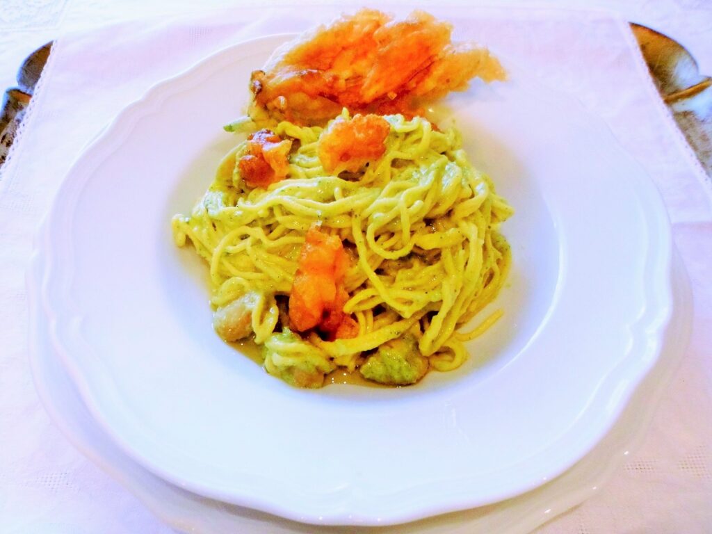 Maggio 28, 2021 RICETTE DI CUCINA articoli 400 admin LE RICETTE DI CASA MIA TRECENTOSEIESIMA PARTE 28/05/2021 IN CUCINA CON AMORE E CON FEDERICA Elena Evviva la pasta fatta in casa! Così mi dicono molte persone. Io allora per omaggiarle ho fatto un tris di ravioli, eccoli nella foto sotto. TRIS DI RAVIOLI Ingredienti: uova, un uovo per ogni 110 g di farina per pasta fresca. Per i ravioli vegetariani occorrono: 330 g di formaggio primo sale, due bustine di zafferano, cipolle di tropea mantecate, basilico, parmigiano, sale, pepe, per il ragù: salsa di pomodoro fatta in casa, basilico, salvia, olio extra vergine d’oliva, pecorino romano grattugiato. Per i secondi ravioli: ricotta vaccina, stracotto di carne mista, panco, parmigiano grattugiato, spezie miste. Per il condimento: squacquerone e salvia. Per la terza versione : platesse alla mugnaia, sale, pepe, spezie, rosmarino, due etti di ricotta vaccina, pecorino grattugiato. Per il condimento: olio extra vergine d’oliva, un po’ di burro, basilico e salvia. Esecuzione dei primi ravioli: dobbiamo mantecare le cipolle con vino rosso e aromi a piacere, poi mescoliamo a crema il primo sale, aggiungiamo sale, pepe, zafferano e parmigiano grattugiato . Facciamo un bell’impasto, poi tiriamo la sfoglia e facciamo i ravioli; questi verranno conditi con il sugo di pomodoro erbe aromatiche delicate, olio extra vergine d’oliva gentile e pecorino romano grattugiato. Per i secondi ravioli: facciamo uno stracotto con carni miste, poi lo maciniamo, aggiungiamo spezie miste, panco, la ricotta setacciata e parmigiano grattugiato, facciamo un altro bell’impasto e incominciamo ad eseguire i secondi ravioli che verranno conditi con squacquerone mescolato e diluito con un po’ di latte, e aromatizzato con salvia fresca. Per la terza versione: facciamo le platesse alla mugnaia, mettiamo la ricotta setacciata, aggiustiamo di sale, pepe, un po’ di spezie a piacere, pecorino grattugiato, e rosmarino secco; mescoliamo bene e amalgamiamo tutti gli ingredienti e incominciamo ad eseguire gli ultimi ravioli che condiremo con olio burro e salvia. Federica Sono di un gusto incredibile! Elena Grazie Fede, mi dispiace che la foto sia un po’ sfocata: ma è stato perché li ho fotografati bollenti e il vapore mi ha fatto questo gioco. Ciao, a domani. 29/05/2021 Elena Oggi presento un piatto di filetti di pesce di lago misto: Salmerino, trota e luccio. FILETTI DI PESCE MISTO DI LAGO IN SALSA Ingredienti: filetti di salmerino, trota bianca e luccio, pangrattato fine, due uova, olio extra vergine d’oliva, aglio fresco, rosmarino, capperi, crema di burrata, latte q.b. pepe, sale, un limone, aceto di mele. Esecuzione: dopo aver lavato i filetti di pesce li ho passati con un canovaccio per asciugare l’eccesso e li ho adagiati in una marinatura di olio, limone, aceto e aglio fresco tagliato a pezzetti compreso il gambo, con sale e pepe. Li ho lasciati così per tre ore, poi li ho tolti dalla marinatura e li ho asciugati un po’ li ho passati nell’uovo e nel pangrattato, poi ho versato su tutti delle gocce di olio e li ho messi sulla piastra. Li ho girati e ho ripetuto la stessa operazione. Poi li ho impiattati ed ho cosparso una salsetta di crema di latte con rosmarino, capperi, qualche goccia di aceto, e il pepe. Erano fragranti e saporiti. Federica È una bellissima ricetta! 31/05/2021 Elena A casa mia piace molto il pollo in casseruola e anche ben cotto, perché a molti sia il pollame che le carni suine non piacciono al dente, che si veda il rosa; come invece è già diverso il discorso se si parla di manzo o meglio ancora la tagliata e la fiorentina. POLLO AROMATICO IN CASSERUOLA Ingredienti: un pollo, spezie miste, rosmarino, maggiorana, alloro, ginepro, erba cipollina, sale, pepe, vino bianco, brodo di carne, aglio, olio extra vergine d’oliva gentile. Per il contorno: patate, peperoni, cipolle e finocchi. Esecuzione: per prima cosa togliamo al pollo quasi tutta la pelle e il grasso. Poi lo massaggiamo con un insieme di erbe e spezie, sale a nostro piacimento. Lo lasciamo riposare per qualche ora, meglio ancora per tutta una notte. Poi lo mettiamo in casseruola e lo rosoliamo in poco olio, lo giriamo e rigiriamo e sfumiamo col vino. mettiamo ancora erbe sia dentro che fuori dal pollo e aggiungiamo un mestolo di brodo, poi mettiamo il coperchio e lo lasciamo cuocere per venti minuti a calore moderato. A cottura preferita lo togliamo dalla casseruola, lo tagliamo a pezzi e lo serviremo con le verdure crudité o verdure miste al forno. VERDURE MISTE AL FORNO Federica Mi piace questo abbinamento di verdure con il pollo, poi il tuo pollo è tutto un sapore meraviglioso! 01/06/2021 Elena Che ne dici di un altro risotto, anche se sembra uguale i sapori sono sempre diversi. Questo risotto è cotto nel brodo di verdure, dove ci sono anche sapori incredibili come i funghi porcini, e il tartufo, in crema di patate; una cosa davvero unica! RISOTTO CON SAPORI DIVERSI Ingredienti: risotto q.b., brodo di erbe e verdure miste, compresi porcini e tartufo. Una grossa patata, olio extra vergine d’oliva gentile, un cucchiaio di burro, parmigiano grattugiato, pepe e sale, due tropea, un bicchierino di millefiori. Facciamo rosolare il riso, poi uniamo le cipolle tropea , sfumiamo col millefiori, incorporiamo il brodo e la patata tagliata a tocchetti, aggiustiamo di sale e pepe e facciamo cuocere senza il coperchio. A cottura al dente mantechiamo il riso con un cucchiaio di burro, poi a fuoco spento aggiungiamo il parmigiano, un po’ di brodo saporito, e il risotto in crema di patate e grandi sapori è pronto da impiattare. Federica I tuoi piatti semplici sono buoni da urlo! Elena Grazie cara Fede a domani! 03/06/2021 Elena Un altro piatto gustoso sono le verdure ripiene e i fiori di zucca al forno, eccoli nella foto sotto. VERDURE RIPIENE E FIORI DI ZUCCA Ingredienti: cipolle bianche e tropea, parmigiano, olio extra vergine d’oliva, pesce gatto, peperoni cruschi, pang