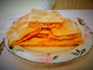 Maggio 26, 2021 RICETTE DI CUCINA articoli 400 admin LE RICETTE DI CASA MIA TRECENTOCINQUESIMA PARTE 26/05/2021 IN CUCINA CON AMORE E CON FEDERICA Elena Come vi ho promesso nell’articolo precedente oggi mostrerò le foto di alcune delle mie ricette con la pasta sfoglia fatta in casa. Voglio incominciare con una ricetta nuova, fatta nei giorni scorsi per i miei ospiti. È una torta con sapori meravigliosi: di mele, all’amaretto, noci, e uno strato di torta paradiso, il tutto ricoperto con la mia pasta sfoglia fresca. Diciamo che è un viaggio alle porte del paradiso sulla terra. TORTA PARADISO SULLA TERRA (così l’ha definita chi l’ha gustata) Ingredienti: cinquecento g di gherigli di noci, 100 g di zucchero di canna, crema all’amaretto, torta paradiso, tre mele in composta fatta con mele tagliate a fettine, due cucchiai di zucchero semolato, la buccia grattugiata di mezzo limone e di mezza arancia, liquore all’amaretto, (un bicchierino), estratto di vaniglia vera, quattro cucchiai colmi di crema chantilly, pasta sfoglia per l’involucro della torta e zucchero a velo. Esecuzione: per prima cosa facciamo una bella torta paradiso, e una bella pasta sfoglia fresca: possiamo eseguirle anche il giorno prima per anticiparci sulle nostre cose. Poi sgusciamo tutte le noci e nel frattempo facciamo una crema all’amaretto: con latte, due uova intere, 100 g di gherigli di noci passati al tritatutto da renderli in farina, poi facciamo la composta di mele con lo zucchero il liquore, le scorze di limone e arancia grattugiate, un po’ di succo dei due frutti, poi mettiamo tutti gli ingredienti sul piano di lavoro. Incominciamo a comporre la torta: stendiamo la pasta sfoglia non a cerchio ma quadrata, poi foderiamo la teglia e lasciamo fuoriuscire i quattro lembi. Adesso dividiamo la torta paradiso in tre parti, una parte la adagiamo sul fondo, in modo che aderisca alla sfoglia, poi ci stendiamo la composta dim mele saporitissima che sprigiona profumi e sapori compatibili con il tutto. Mettiamo anche il secondo strato di torta paradiso, poi adagiamo anche la crema all’amaretto e noci; il prossimo strato sarà quello delle noci tritate e caramellate, infine copriremo con il lembi della pasta sfoglia e decoriamo con sciroppo denso di zucchero e gherigli di noci. I sapori sono meravigliosi! È riuscita come desideravo. N. B. Prima di mettere la pasta sfoglia nella teglia, ho imburrato quest’ultima e poi l’ho cosparsa di zucchero di canna. Federica Io credo che chi l’ha assaggiata abbia ragione! Ci si sente in paradiso! Elena Grazie anche a voi! Ciao a domani. 27/05/2021 LA MIA TORTA DIPLOMATICA Eseguita nel dicembre 2017 DOLCETTI SEMPLICI ALLA CREMA CHANTILLY E FRUTTA FRESCA I MIEI CANNONCINI IL MIO STRUDEL SACCOTTINI DI PASTA SFOGLIA DOLCE E SALATA Elena Ecco queste sono alcune delle mie foto di ricette eseguite con la mia pasta sfoglia, potete trovare le ricette sfogliando il mio blog. Sempre con la pasta sfoglia ci sono anche pizze dolci, salate e antipasti ecc. A domani con nuove ricette di casa mia. Ciao! 01/06/2021 Elena Ed ecco qui la foto di alcuni dei miei antipasti di pasta sfoglia fatta in casa di tempo fa. ANTIPASTI E APERITIVI E ANCORA UNA PIZZA CON LA PASTA SFOGLIA
