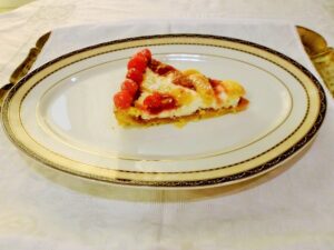 Giugno 12, 2021 RICETTE DI CUCINA articoli 400 admin LE RICETTE DI CASA MIA TRECENTOOTTESIMA PARTE 12/06/2021 IN CUCINA CON AMORE E CON FEDERICA Elena Veronica mi ha chiesto la ricetta della torta di lamponi. Ebbene V. la troverai nell’articolo di cucina datato 31/08/2020; lì vicino in un altro articolo c’è anche l’altra torta di lamponi, un semifreddo al cucchiaio. Per ora ti mostrerò la foto. TORTA DI LAMPONI Elena E veniamo alla ricetta di oggi: sono spiedini di salmone alla piastra in contorno di fagioli al sugo, strepitosa! SPIEDINI DI SALMONE ALLA PIASTRA Ingredienti: salmone q.b., salvia, timo, rosmarino, aglio, aceto, limone, cipolla bianca e tropea, peperone verde e rosso, olio extra vergine d’oliva, sale, pepe. Per i fagioli al sugo: fagioli borlotti, scalogno e porro, vino rosato, sale, peperoncino, olio extra vergine d’oliva, una crosta di parmigiano, basilico, origano, rosmarino, 500 g di sugo di pomodoro fatto in casa, brodo vegetale. Esecuzione: Per prima cosa mettiamo il salmone e le verdure tagliati a pezzetti in marinatura, con sale, pepe, succo di limone, aceto di mele, olio, salvia, timo, aglio e rosmarino. Poi facciamo un soffritto con lo scalogno e porro e sugo di pomodoro, sfumiamo col vino rosato e caliamo i fagioli, saliamo e mettiamo il peperoncino, la crosta di parmigiano e il brodo. Lasciamo stufare e nel frattempo abbiamo cucinato il salmone infilandolo negli stecchini alternato a peperoni e cipolle, lo abbiamo spennellato con il succo della marinatura e poi cucinato sulla piastra. Ed ecco il piatto. Federica Squisito! 14/05/2021 Elena Oggi presento la mia focaccia al lievito madre farcita, squisita. FOCACCIA FARCITA Ingredienti: lievito madre, 300 g , 600 g di farina: un terzo manitoba, un terzo farina tipo 1 e un quarto di semola di grano duro, mezzo bicchiere di olio extra vergine d’oliva, sale, acqua, e latte. Per la farcitura: due etti prosciutto cotto a fette, mozzarella di bufala, parmigiano 50 g, salsa di pomodoro, origano fresco, due cipolle tropea, pepe. Esecuzione: impastiamo il lievito madre con la farina, il latte, l’acqua, sale e l’olio. Lasciamo riposare l’impasto per una notte, il mattino seguente lo impastiamo di nuovo con acqua e farina, poi lo lasciamo lievitare ancora per tutto il giorno, la sera facciamo la focaccia dividendo la massa lievitata in due parti, una la stendiamo nella teglia unta e infarinata, poi la copriamo con la cipolla stufata il sugo di pomodoro e origano, mettiamo la mozzarella, il prosciutto cotto, stendiamo anche una manciata di parmigiano sia sulle cipolle e prima di coprire la focaccia con l’altra parte superiore che abbiamo tenuto da parte. Inforniamo a calore di 230° cent. per sette minuti e la focaccia sarà pronta da gustare in compagnia. Il risultato è eccellente perché morbida dentro e fragrante sopra. Federica non posso dire che non sia buona da morire, sembra pasta sfoglia, ha proprio l’effetto della pasta sfoglia. 15/06/2021 Elena Oggi presento ancora dei paccheri, con l’effetto guacamole, in realtà sono cucinati con fiori di zucca, zafferano e spezie che li rendono gustosi e unici. PACCHERI GOLOSI Ingredienti: Paccheri, fiori di zucca, sale, pepe, spezie miste: (noce moscata, cannella, macis, chiodo di garofano, aglio) una cipolla tropea, funghi porcini freschi (congelati) parmigiano, latte, ricotta, olio extra vergine d’oliva, basilico, pimpinella, genziana, mezzo bicchiere di vino bianco secco per sfumare. Esecuzione: Pulire bene i fungi, tagliarli a pezzetti, e metterli in padella con poco olio e cipolla tritata. Sfumare col vino e cuocere per qualche minuto. Aggiungere le spezie, le erbe tagliate a pezzettini con le mani (per il rispetto delle molecole) poi fare una crema con il parmigiano e la ricotta aggiungendo un po’ di latte; incorporare il tutto e amalgamare insieme anche ai fiori di zucca passati precedentemente in un’altra padella. Ora che tutto è pronto possiamo calare la pasta e cuocerla al dente. Una volta scolata versarla nella padella dove abbiamo unito tutti gli ingredienti e mantecare; a fuoco spento fare un giro di olio e una manciata di parmigiano. Federica Sono buonissimisssimissimi! 16/06/2021 Elena Una ricetta nuova per il petto di anatra. Eccolo nella foto sotto. PETTO D’ANATRA AL MARTINI Ingredienti: petto d’anatra, mezzo bicchiere di martini, una foglia di menta, un ramo di rosmarino, tre foglie di salvia, una cipolla grande, aglio, sale, pepe, due foglie di tanaceto, due foglie di alloro, due mestoli di brodo vegetale fatto in casa, olio extra vergine d’oliva e concia per la marinatura. Esecuzione: mettere la carne a marinare per una notte con la concia: aglio, rosmarino, origano, sale, pepe, e citronette. Il giorno seguente la faccio rosolare sulla griglia, e nel frattempo metto tutti i sapori e le spezie nella casseruola poi trasporto la carne e passo il tutto con il martini. Una volta evaporato l’alcool aggiungo il brodo e porto a cottura desiderata. Con questa operazione la carne perde il selvatico del pollame e assume un sapore meraviglioso. Federica Hai detto bene, meraviglioso! 17/06/2021 Elena Un risotto semplice e gustoso si può fare in mille modi, uno di questi è al tartufo, un classico sì, ma c’è risotto e risotto, nel senso che se non è fatto col cuore neanche il tartufo potrà dargli quel risultato di eccellente. RISOTTO FATTO COL CUORE Ingredienti: Riso, brodo vegetale, luganega, bacche di ginepro, basilico, salsa di pomodoro fatta in casa, porro, sale, pepe, parmigiano, olio extra v. d’oliva, vino rosato per sfumare, mezzo bicchiere di latte. Esecuzione: in una casseruola fare soffriggere il porro in pochissimo olio, in un’altra facciamo tostare il riso, poi lo passiamo nella casseruola del soffritto, sfumiamo col vino, e aggiungiamo tutti gli ingredienti, tranne il latte, il parmigiano e il tartufo, compresa la luganega grigliata e tagliata a piccoli pezzi, il brodo, saliamo e facciamo cuocere il risotto a