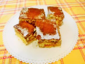 Esecuzione: Fare la pasta sfoglia il giorno prima. Poi dividerla in 4 strati da 10 cm per 20. Incominciamo con lo zabaione: sbattiamo le uova con lo zucchero, aggiungiamo il rum e mescoliamo bene con la frusta, lo mettiamo a cuocere a bagno maria non in forno perché durante il processo di cottura deve essere sempre mescolato, non appena la crema assume quell’aspetto denso e gonfio, è pronto da togliere dal fuoco e lasciarlo raffreddare. Adesso passiamo alla crema di caffè, nel caffè facciamo sciogliere l’amido di mais e lo zucchero, quando la crema incomincerà ad addensarsi aggiungiamo il caffè solubile e mescoliamo bene. L’ultima crema al torroncino, sciogliamo la farina nel latte di mandorla, aggiungeremo lo zucchero, la cannella, e gli altri aromi, lasciamo sobbollire un minuto poi la toglieremo e la faremo raffreddare; una volta raffreddata aggiungeremo le mandorle tostate con lo zucchero a velo vanigliato. Componiamo la torta faremo 3 strati + l’ultimo foglio di sfoglia che copriremo con zucchero a velo vanigliato e cacao amaro.