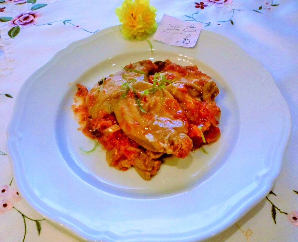 Gennaio 7, 2019 RICETTE DI CUCINA articoli 400 admin LE RICETTE DI CASA MIA DUECENTOSESSANTASETTESIMA PARTE 07/01/2019 IN CUCINA CON AMORE E CON FEDERICA Elena Ciao carissima Fede, oggi ti presento una ricetta che ho assaggiato da mio fratello, è un bravo cuciniere, mi è piaciuta molto e ho voluto vedere se riuscivo a riprodurla uguale alla sua. A me sembra che i sapori siano gli stessi, poi se ho aggiunto o tolto qualcosa non ha importanza, l’importante è che il piatto sia riuscito. GUANCIALINI DI MANZO AL BARBERA Ingredienti: guanciali di manzo o di suino, tre scalogni, una bottiglia di barbera, un ciuffo di erbe e di verdure fresche, pomodoro in salsa, un pizzico di spezie miste, sale, un pizzico di peperoncino, un mestolo di brodo, polenta di mais, olio extra vergine d’oliva, un cucchiaio di salsa barbecue. Esecuzione: prendiamo una casseruola e una padella, nella casseruola faremo sigillare la carne, nella padella invece faremo rosolare gli scalogni tritati. Adagiamo gli scalogni in casseruola e sfumiamo col vino. Ora aggiungeremo tutti gli ingredienti sopraelencati tranne il brodo che lo metteremo mano a mano che il vino si esaurisce; facciamo sobbollire e a fine cottura serviremo i guancialini con polenta di mais al cucchiaio o alla piastra. Federica Erano squisiti! 08/01/2019 Elena Oggi invece presento una minestra povera ma ricca di salute, è la pasta tagliata a coltello fino a farla diventare come dei chicchi. MINESTRA FRESCA TAGLIATA Ingredienti: due uova, farina per pasta fresca, pomodorini secchi, salsa di pomodoro, uno scalogno, una cipolla , carota e sedano, alloro, sale, pepe, cannella, noce moscata, duecento g di pancetta steccata, una patata, fagioli, ceci, peperoni mantovani, basilico, cavolo cappuccio, parmigiano grattugiato e la crosta di parmigiano, finocchio, sale e pepe, olio extra vergine d’oliva. Esecuzione: in una casseruola facciamo soffriggere lo scalogno tritato, sfumiamo col vino e poi aggiungeremo le verdure tagliate a pezzetti, i ceci, i fagioli, le spezie, sale e pepe, infine metteremo il brodo. Facciamo cuocere lentamente i legumi e le verdure tagliate a piccoli pezzi, la crosta di formaggio. Nel frattempo faremo la pasta, dopo avere impastato le uova con la farina, la lasceremo riposare per trenta minuti e poi con il coltello tagliamo in quattro parti il panetto di pasta; invece di tirarla col matterello la tagliamo a coltello più o meno fine. Lasciamo asciugare la pasta tagliata a temperatura ambiente e intanto facciamo dorare la pancetta tagliata a striscioline corte: deve diventare croccante senza bruciature. Quando i legumi e le verdure saranno cotte al dente buttiamo un po’ della pasta tagliata e la cuoceremo per un minuto; impiattiamo con una spolverata di parmigiano e un filo di olio, infine distribuiremo la pancetta croccante. Federica Hai indovinato la minestra per oggi, in una giornata così perfida e umida, qualcosa che riscaldi con il calore di questi ingredienti fa bene non solo allo stomaco ma anche al cuore. Non vedo l’ora di conoscere altre tue ricette. Ciao! 09/01/2019 Elena Ciao Fede, sto per presentarti gli involtini di sella di coniglio impanati, in un purè di patate di montagna e carciofi. INVOLTINI DI SELLA DI CONIGLIO IMPANATI Ingredienti: sella di coniglio, e trancio di coniglio tagliato a piccoli pezzi e disossato, vino bianco secco, alloro, sale, pepe, cannella, noce moscata. Una grossa cipolla dorata, vino bianco quanto serve, sale, pepe, un chiodo di garofano, cerfoglio, origano, aglio in camicia, pomodori pelati quattro, una costa di sedano e una carota, finicchietto selvatico, un pizzico di rafano. Per la panatura servono due uova, farina e panco q.b. olio di semi di arachidi e olio extra vergine d’oliva. Per il contorno. patate, cuori di carciofi freschi, parmigiano, latte. Per la decorazione: pomodorini secchi rinvenuti e cucinati. Esecuzione: prepariamo i pezzetti di carne, la sigilliamo, poi la metteremo in una casseruola con la cipolla tagliata fine e la ripassiamo ancora, compresala sella. poi sfumiamo col vino e aggiungeremo le erbe, le spezie e le verdure a tocchetti. Aggiungiamo un mestolo di brodo e lasciamo cuocere bene la carne; la sella la toglieremo al dente. Una volta raffreddato lo stracotto, faremo degli involtini e poi li passiamo nella farina, nell’uovo e nel panco e in padella. Serviamo questi gustosi involtini con purè di patate e purè di cuori di carcofi. Federica questo piatto richede una bella lavorazione ma ne vale la pena! 10/01/2019 Elena Questa ricetta ti piacerà molto, è un’insieme di terra e mare. Sapori che s’incontrano e si abbracciano bene tra loro. TORTELLONI TERRA E MARE Ingredienti: tre etti di alici fresche, centocinquanta g di gambuccio di prosciutto grigliato, erbe armatiche: prezzemolo, aglio, scalogno, timo, rosmarino, origano; sale e pepe, olio extra vergine d’oliva, uova e farina per pasta fresca, tre acciughe sotto sale, panco, parmigiano grattugiato, duecento g di primo sale, una noce di burro. Esecuzione: per prima cosa faremo il ripieno dei nostri tortelloni con: le alici ben pulite e disliscate e passate al forno con appena un po’ di olio. Poi le sminuzzeremo con il coltello e le versiamo nella zuppiera, inserendo le erbe tritate compreso uno spicchietto di aglio, un po’ di panco, il primo sale sbriciolato e parmigiano (il sale non lo metto mai perché poi incorporiamo anche le acciughe sotto sale) aggiungiamo un po’ di pepe e origano fresco. Adesso mettiamo da parte il ripieno e facciamo una sfoglia sottile con le uova e la farina; riempiamo i tortelloni e poi li metteremo a cuocere in pochissima acqua o brodo vegetale, andranno cotti lentamente per non lasciar fuoriuscire il pesto. Scoliamo i tortelloni uno ad uno e li verseremo nella padella dove abbiamo fatto soffriggere lo scalogno con l’olio e una volta spento il fuoco abbiamo aggiunto il burro. Mescoliamo per amalgamare sugo ed erbe e prima di impiattare metteremo una spolverata di