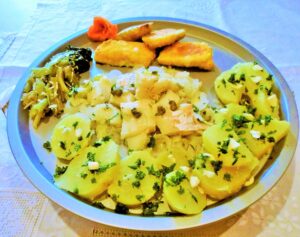 Aprile 5, 2018 RICETTE DI CUCINA articoli 400 admin LE RICETTE DI CASA MIA DUECENTOCINQUANTESIMA PARTE 05/04/2018 IN CUCINA CON AMORE E CON FEDERICA Elena Hai mai assaggiato la salsiccia fatta con la carne di oca? È davvero buona, si può cucinare anche stufata, non è grassa come dicono, e non fa male. Ti presento la ricetta. MELANZANE INCORONATE CON SALSICCIA DI OCA Igredienti: due salsicce di carne di oca, una melanzana grande, verza stufata, un peperone rosso, dragoncello, olio extra vergine d’ oliva, aceto di mele e aceto di acero, olio per friggere, panco, pastella fatta con vino bianco e farina di riso, farina di grano tenero tipo “0”, un cipollotto, uno spicchio di aglio, prezzemolo, sale e pepe. Esecuzione: per prima cosa mettiamo a lessare la verza con un po’ di brodo, sale, pepe, aceto di mele, due spicchi di aglio; iniziamo ora a stufare la salsiccia con il cipollotto, un peperone rosso, il dragoncello, niente sale e niente spezie perché la salsiccia ne contiene a sufficienza. Una volta fatto questo stufato mettiamo a friggere la melanzana tagliata precedentemente a cubetti, salata e pepata, togliamo l’acqua che ha rigettato con il sale e la spuzziamo con l’aceto di mele, l’avvolgeremo nella farina e via nell’olio bollente. Adesso prendiamo una fetta grande di melanzana che abbiamo risparmiato all’inizio e la passeremo nella pastella di panco, vino bianco e farina di riso, la mettiamo a cuocere nell’olio bollente e poi sull’assorbente. Adesso è l’ora di preparare il piatto: prima metteremo la verza irrorata con un po’ di olio, poi lo stufato d’oca e le melanzane fritte e buon pranzo! Federica Un buon piatto davvero, non c’è che dire! Ma dimmi tu non stai facendo la dieta del dopo festività pasquale? Elena No, perché dovrei? Io non mi sono abbuffata, quindi continuo a comportarmi come sempre. Se durante le feste non prendi nemmeno un etto e poi sei stata attenta alle calorie allora non c’è bisogno di sacrificarsi in questo senso. Per me è più difficile a Natale, mentre in altri periodi dell’anno non faccio fatica a rispettare la dieta. 06/04/2018 Federica Ciao, questa volta sono io la prima a salutarti, non vedo l’ora di vedere la prossima ricetta. A proposito, la salsiccia di oca è molto buona, ma a mangiarla poi non si diventa come le oche? Già che lo sono e se poi mi aggraverò povera me! Elena Ma figurati se sei oca tu! Le oche non sono come te credimi! Davanti a te c’è una fila lunga! Fanno delle figuracce e poi pensano che gli altri no n si accorgano! Ma passiamo alla ricetta del giorno: oggi abbiamo la faraona con i paccheri, prova a farla e poi mi saprai dire. FARAONA CON I PACCHERI Ingredienti per quattro persone: venti paccheri, coscia e petto di faraona, timo, aglio, vino bianco, una noce di burro, olio extra vergine d’oliva, brodo vegetale, patate, scalogno, peperoncino, aceto di acero, parmigiano reggiano, sale e pepe. Esecuzione: per prima cosa mettiamo la faraona a rosolare, poi la sfumiamo con il vino, lasciamo evaporare, aggiungeremo il timo, l’aglio e il rosmarino, poi saliamo, mettiamo anche un po’ di peperoncino e il brodo. Adesso prepariamo le patate per la cottura al vapore, le tagliamo a piccoli tocchetti ci metteremo anche un po’ di pepe, e scalogno, saliamo e a cottura ultimata le mescoliamo ai pezzetti di intingolo di faraona. Lasciamo sciogliere un po’ di burro, aggiungiamo l’olio e adesso aspetteremo la cottura dei paccheri nel brodo; li scoliamo al dente e li mantechiamo nella casseruola dei sapori, aggiungeremo il parmigiano ed il piatto è pronto. Federica Bello e buono anche questo piatto, è un piatto felice! 07/04/2018 Elena Pensavi che non ti avrei chiamata? Per mancare a questo appuntamento deve succedere qualcosa di importante, spero sempre di bello. Questa sera ti presento il pesce, una frittura leggera di pesce azzurro misto. FRITTO MISTO DI PESCE AZZURRO Ingredienti: sarde, alici, orata, triglie. Farina di grano tenero tipo “0”, rosmarino, sale, pepe, limone, cipollotti crudi e cipollotti fritti, fagioli borlotti, olio per friggere e olio extra vergine d’oliva per condire. Esecuzione: puliamo bene il pesce, sfilettiamo l’orata e la taglieremo a pezzetti, una volta lavato per bene lo lascaimo riposare con un po’ di succo di limone. Adesso tagliamo i cipollotti a fettine e gli altri li faremo in insalata insieme ai fagioli lessati che condiremo con aceto di ribes, aceto di mele sale, e pepe. Ora facciamo la frittura infariniamo il pesce e i cipollotti, prima friggeremo i cipollotti e poi il resto. Impiattiamo il pesce in un letto di fagioli e cipollotti aggiungendo solo sale e pepe q.b. sarà buonissimo. Federica Con te ho imparato molti modi diversi di di fare la frittura, grazie! Auguro una buona domenica a tutti! Ciao! 09/04/2018 Elena Ieri sera con la bambina di tuo fratello sono rimasta di stucco, sai cosa mi ha chiesto? Come fanno i capelli di Erika a crescere così in fretta? Ieri erano corti così, oggi invece erano giù dalle spalle. Le ho risposto che prendono una medicina potente, non mi ha creduto, a quattro anni è così perspicace da non crederci. Mi ha chiesto una cosa e sapeva già la risposta. I bambini di questa età sono tutti meravigliosi! Ma passiamo alla ricetta di casa mia: ho un’altra frittatina buona buona fatta con altre erbe. FRITTATA ALLE ERBE Ingredienti: per quattro persone cinque uova, un ciuffetto di erba cipollina, crescione, erba luisa, timo, sale e pepe, parmigiano reggiano, olio extra vergine d’oliva, aceto di mele, schiacciata di farina di mais alla piastra, riccione di campo coltivate, una noce di burro, peperoni rossi. Esecuzione: tritiamo bene le erbe, facciamo la frittata con le uova, il parmigiano e incorporiamo le erbe, sale e pepe, poi la metteremo in una padella con il coperchio e verrà cotta lentamente. Poi facciamo la polenta, diamo la forma, la lasceremo indurire poi la mettiamo sulla piastra e la impiatteremo con so