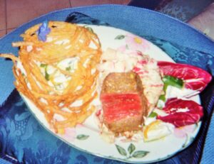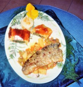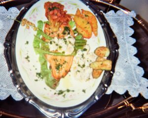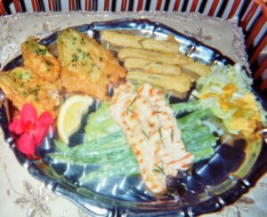 Settembre 11, 2015 RICETTE DI CUCINA articoli 400 admin LE RICETTE DI CASA MIA CENTOSESSANTOTTESIMA PARTE 11/09/2015 IN CUCINA CON AMORE E CON FEDERICA ELENA Vogliamo parlare di cibi diuretici? MOLTO IMPORTANTI PER LA NOSTRA SALUTE, IN SPECIAL MODO PER ALCUNI DISTURBI E PATOLOGIE. Oltre al tè, esistono anche molti cibi che hanno proprietà diuretiche: asparagi, zucca, porri, cavolo, crescione, finocchio, cipolla, pompelmo, (specie se mangiato al mattino a digiuno, questo però dovete chiederlo al vostro medico perché il pompelmo ostacola l’inibizione di alcuni farmaci), mele, rape, rapanelli, zucca, zucchine, uva, ananas, ciliege. Per ciò che riguarda le tisane diuretiche si trovano negli articoli ” le mie tisane e del dott. Robert “. Tutti questi cibi sono ottimi diuretici naturali e aiutano a prevenire la cellulite. Della cellulite ne parleremo nel prossimo articolo. Ora passo alla ricetta di oggi. ROMBO IN SALSA NUOVA Ingredienti: acquistiamo i rombi che ci servono, (questo che vedi nella foto è un rombo medio piccolo), erba cipollina, prezzemolo, cerfoglio, sale pepe, limone, fiori di zucca, farina, latte e pangrattato, patate, olio di arachidi, parmigiano grattugiato, fiori di zucca, asparagi, finocchi rosmarino, salsa verde della casa ( mela verde, limone, aceto di agrumi , maionese casalinga leggera, olio extra vergine d’oliva). Esecuzione: puliamo bene il rombo, lo sfilettiamo, lo mettiamo a marinare per qualche minuto in olio pepe e una spruzzatina di limone. Nel frattempo puliamo gli asparagi, li sbollentiamo, poi andranno in casseruola per alcuni minuti, li togliamo ancora al dente e li condiremo con qualche cucchiaio di salsa; adesso mettiamo i finocchi a lessare, dopo di che andranno in forno pennellati con l’olio e con una manciata di parmigiano grattugiato, sale e pepe. Siamo arrivati ai fiori di zucca che laviamo bene delicatamente, li farciremo con un impasto di rombo tritato, erbe e pangrattao, li immergeremo nel latte, nella farina, e ancora nel pangrattato, andranno poi nella teglia da forno unta sopra ai fiori faremo scivolare qualche goccia di olio, poi, a 170° per 15 minuti. Abbiamo le patate grosse, tagliate con uno spessore di circa un cm e di una lunghezza di dieci cm, le mettiamo in pastella e le friggiamo con l’olio di arachidi; adesso ci sono rimasti solo i filetti del rombo: li togliamo dalla marinatura e subito li grigliamo con cura. Impiattiamo, ed ecco il risultato nella foto sopra. FEDERICA Bello, bellissimo che viene fame solo a vederlo, ma è molto laborioso. ELENA Non se lo fai prima con la mente! Prova e vedrai. FEDERICA Mi daresti un anticipo sulla ricetta di domani? Ti dedico la canzone di Renato Zero: I Migliori Anni. A domani! ELENA Domani ti cucinerò un filetto al sangue che ho cucinato per due miei parenti nuovi perché gli altri non amano la carne al sangue e nemmeno io, però è venuta bene come la volevano loro. 12/10/2015 ELENA Eccoci qui per la ricetta che ti ho promesso. FILETTO AL SANGUE IN CONTORNO DI CATALOGNA IN PASTELLA Ingredienti: filetto che serve, olio extra vergine d’oliva, pastella, salsa di zenzero, rosmarino, aglio, pepe, limone, aceto di mele, cerfoglio, spezie miste (noce moscata, cannella, chiodo di garofano), radicchio misto, catalogna, olio per frittura. Esecuzione: massaggiamo bene la carne con le spezie e il sale, possiamo lasciarlo intero o tagliarlo a fette di cm 2 e 1/2, facciamo una salsa con le erbe, l’aceto, il limone e l’olio. Nel frattempo puliamo bene la catalogna e il radicchio, tagliamo a listarelle i gambi della catalogna, li sbollentiamo e li immergeremo nella pastella, li friggeremo in olio che mantenga il punto di fumo; una volta fritto lo vogliamo bell’asciutto, poi lo mettiamo nel piattone accanto al filetto rosolato in casseruola con una punta d’olio, lasciato cuocere col coperchio per 5 minuti circa, poi lo adageremo sopra un letto di radicchio condito con salsa alle erbe. Ed ecco il piatto! FEDERICA A chi piace la carne ancora rossa è un piatto bellissimo ! Buon Week-end! 15/09/2015 FEDERICA Pensavo che fossi partita! Cosa mi cucini di bello? ELENA No, è ancora presto per la partenza. Oggi ti cucino il filetto di orata in un letto di verdure stufate, un soufflettino come decorazione del piatto e un contorno di tortino agli spinaci. FILETTO DI ORATA Ingredienti: orate, patate, peperoni, carote, alloro, zucchine, salvia, cipollotti bianchi, fontina, spinaci selvatici, aglio, olio extra vergine d’oliva, soufflé alla zucca. pangrattato, prezzemolo, limone, sale, pepe, vino bianco, brodo, parmigiano, zenzero. Esecuzione: laviamo le orate, le puliamo da tutto comprese le squame, le mettiamo con erbe, sale, pepe, olio e limone. Intanto prepariamo le verdure tagliate a pezzetti, le mettiamo a cuocere con il vino e con l’aggiunta di un mestolo di brodo, l’alloro, il peperoncino, aggiustiamo di sale, e dopo la cottura aggiungeremo il pepe e un cucchiaio di parmigiano grattugiato. Ora prepariamo una pasta brisé molto sottile, trifoliamo gli spinaci, li facciamo asciugare dal liquido e aggiungiamo la fontina a pezzi. Tiriamo la pasta, la riempiamo e chiudiamo i due lembi. pennelliamo con l’olio e inforniamo 180° per 15 minuti. Per ultima cosa cuciniamo bene la spigola togliamo i filetti dalla marinatura li mettiamo nel pangrattato e li mettiamo nella casseruola già calda riversi sulla parte interna, poi spegneremo il fuoco, aspettiamo un attimo che si stacchino da soli e li giriamo sulla parte esterna, che finiranno la loro cottura lasciando la crosticina croccante. Ora è il momento di fare il piatto. Ti piace? FEDERICA COME FACCIO A DIRTI DI NO, SAREI BUGIARDA! È un bellissimo piatto fatto con il cuore! 16/09/2015 ELENA Che dici? Un altro piatto di pesce? FEDERICA Vorrei fare un bollito speciale, leggero e diverso, come lo faresti? ELENA Ho la ricetta nuova per te! BOLLITO DI MANZO AL VAPORE Ingredienti: carne da bollito (polpa spalla o coscia) spezie miste (sale, pe